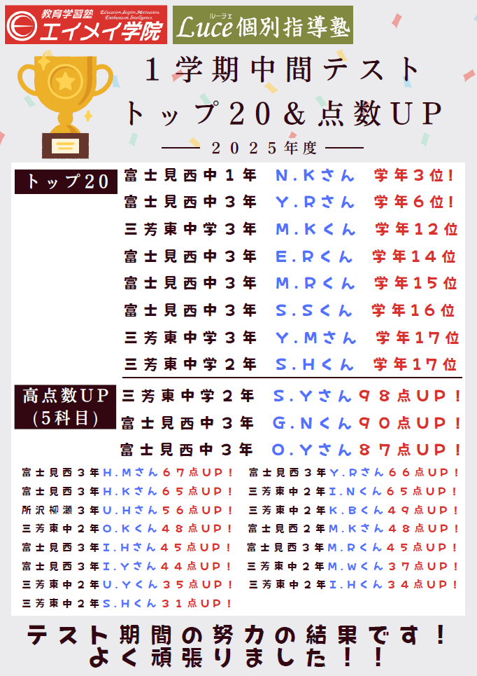 定期テストに強いエイメイ学院!