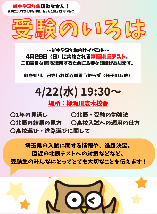 【柳瀬川志木】新中学1・3年生イベントのお知らせ📢