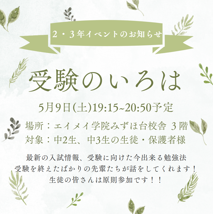 どうもこんにちは、エイメイ学院のASKです✋️ 3月も中旬です、今週末は卒業式ですね🌸 新高1は、直近で「高校入学者向け説明会」がある人も多いんじゃないでしょうか さらに!新学期までに行う、春休み期間中の課題 […]