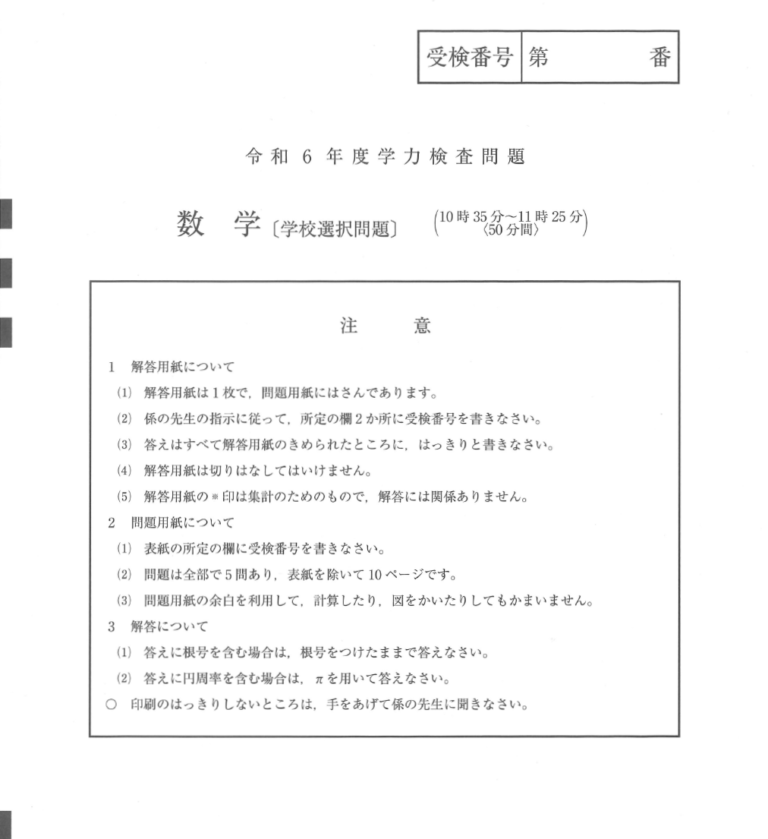 コチラは各学校の試験の表紙です