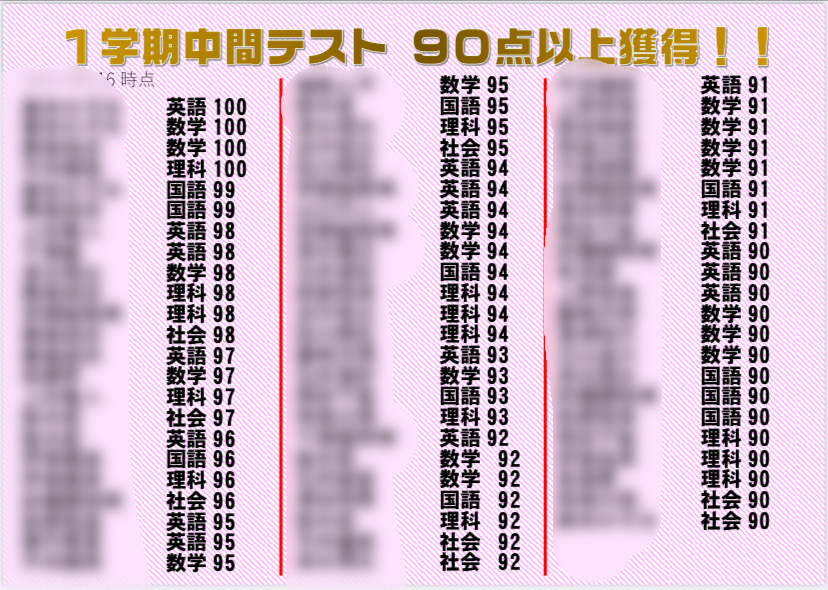 さらにテスト2周間前からは授業時間を延長し、各学校ごとに定期テスト対策授業を行います!その学校の定期テストやノートを分析した上で、大事なポイントに絞って講義&演習をします!