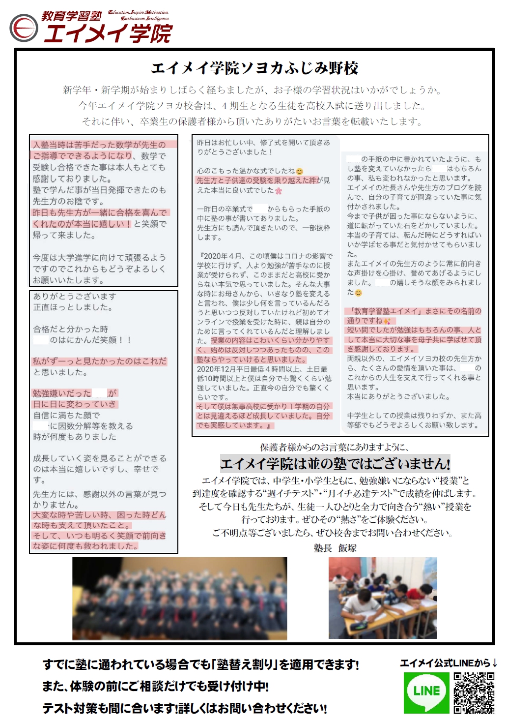 日々の生徒の様子や、先生の思いをブログで発信しています!