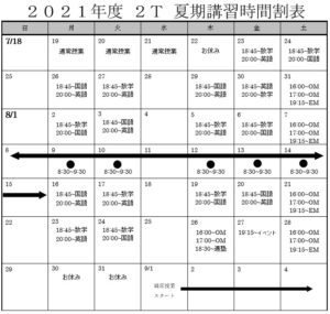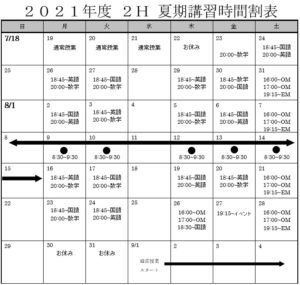 【みずほ台】夏期講習時間割のお知らせ