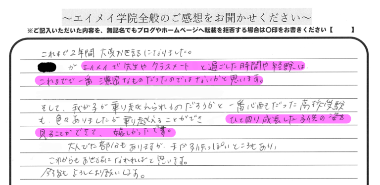 【ふじみ野校】「親から見たエイメイ」~受験を終えた保護者から シリーズ⑱~