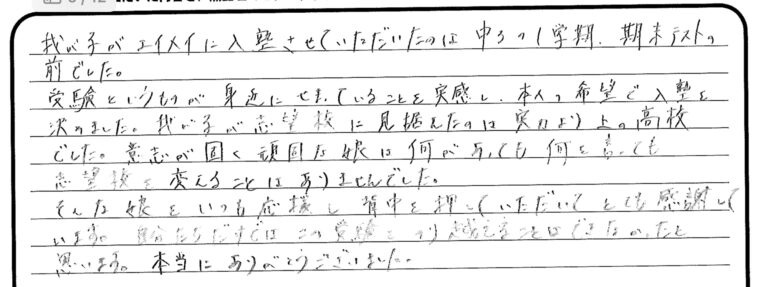 「エイメイで受験できてよかった」