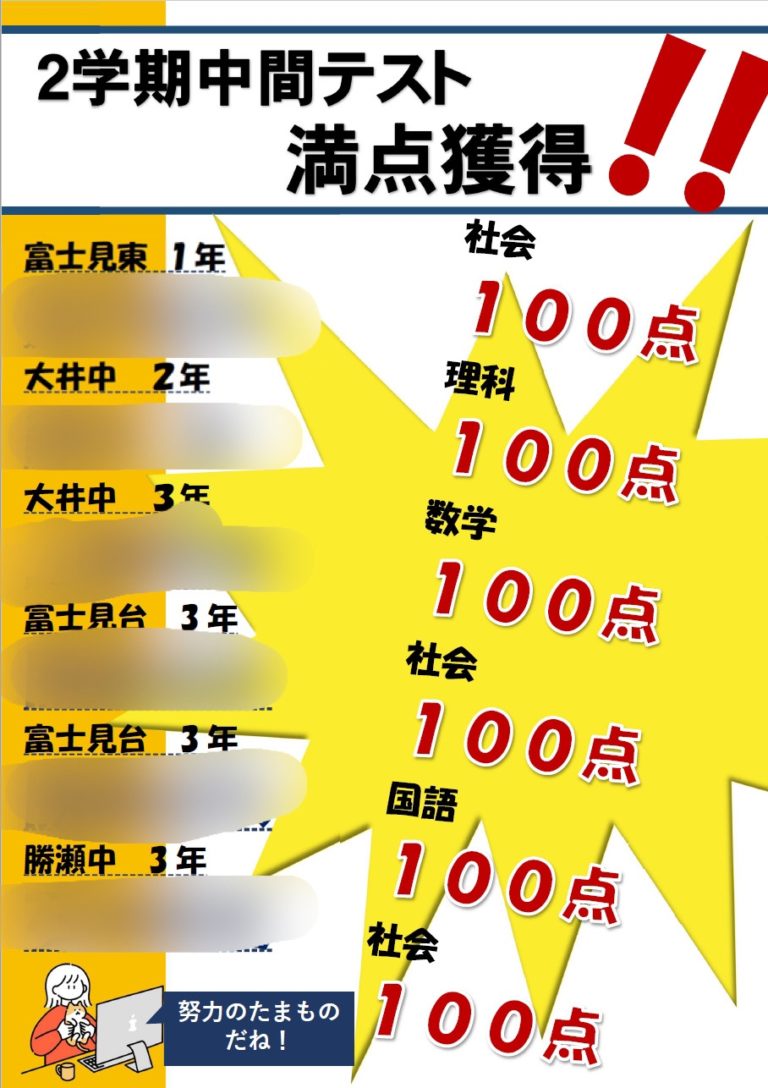 大井中3年の代は、エイメイ生が3回連続学年1位を獲りました。
