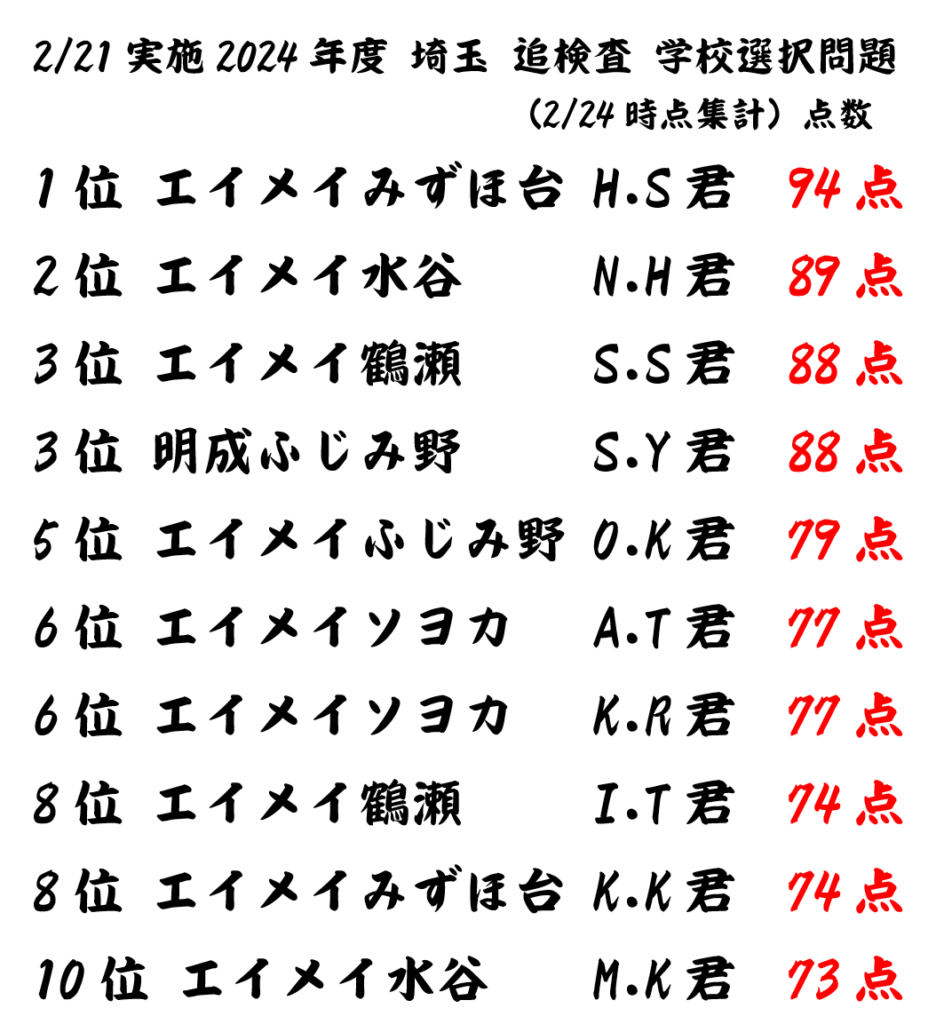 先週の2月21日に行われた合格講座、最終回のランキングを発表いたします!