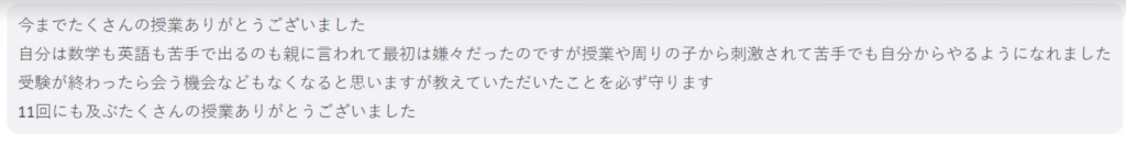 「英語は世界1嫌いだった。でも、興味をわくような授業だった。」