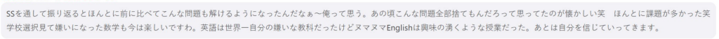 高校で勉強が大変な時もきっと来る、そんな時SS60で経験したこと・受験で経験したこと・先生たちの言葉を振り返って、