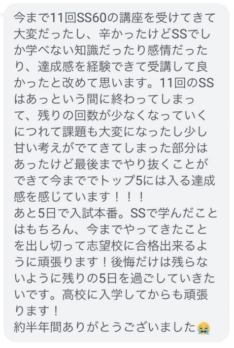 「SS60のおかげで偏差値もあがった。何より自信がついた。」