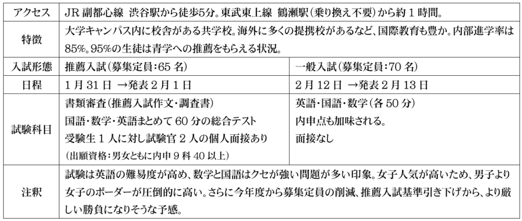 説明会で聞いた内容をもとに「青山学院高等部」の特徴を見ていきましょう。