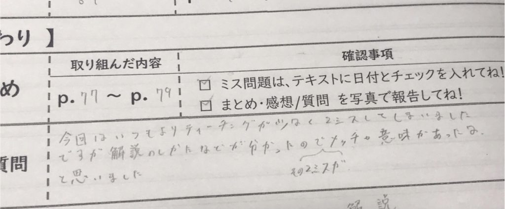 先生は、それを見て、適切にまとめられているかを確認し、ティーチングを行います。