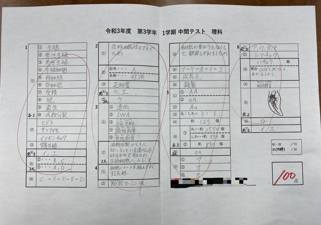 富士見台中の3年生が理科で見事100点を取ってくれました!