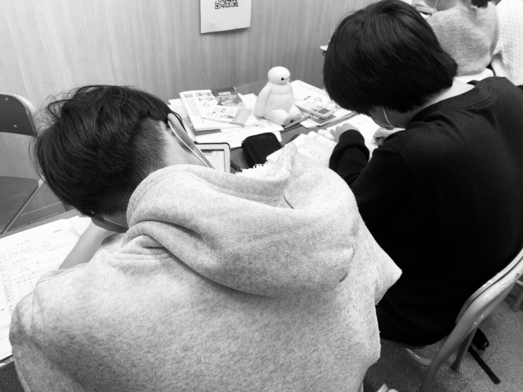 夜の自習室の受験生の背中です。