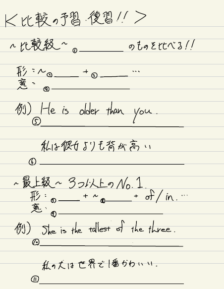 ・比較のテスト勉強
