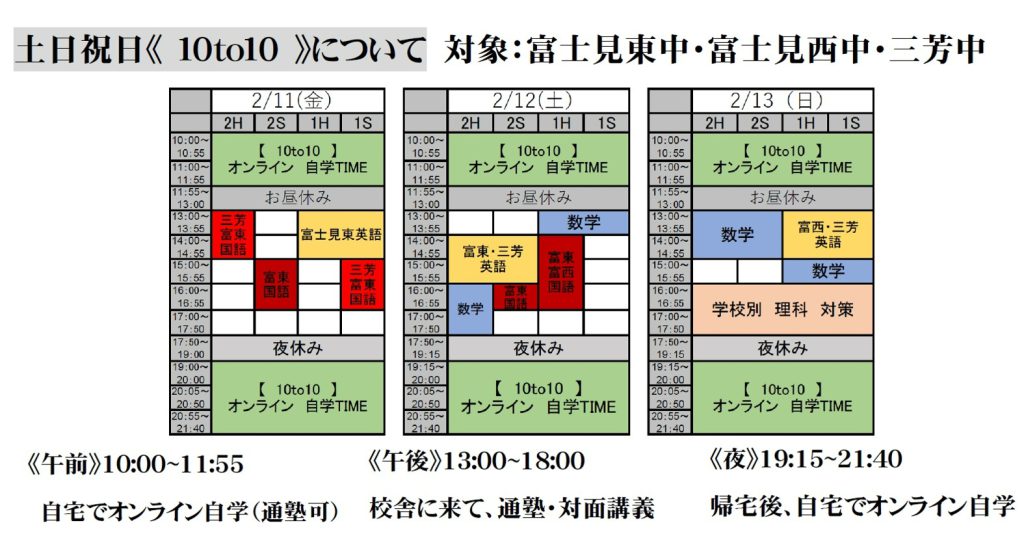 富士見西中、三芳中、藤久保中、三芳東中、富士見台中も続々と2週間前に突入!