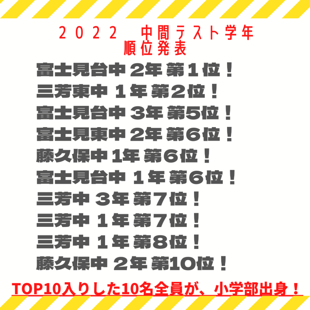 各中学校で学年とトップ10入りを果たした生徒は、全員小学部出身であったということ。
