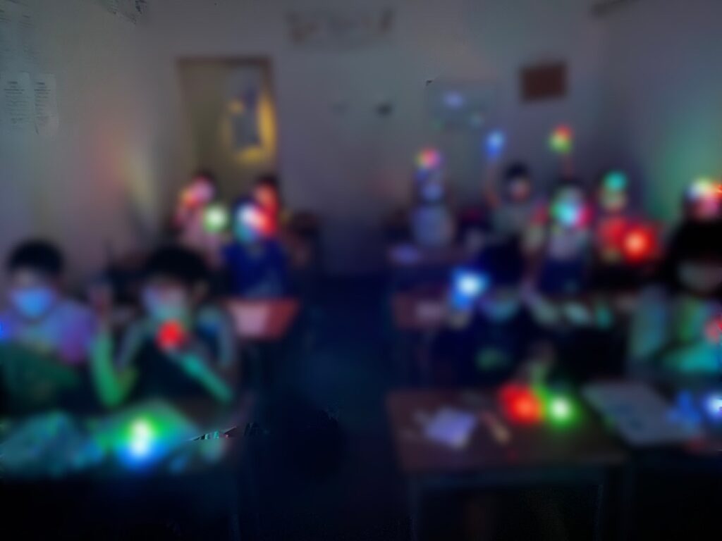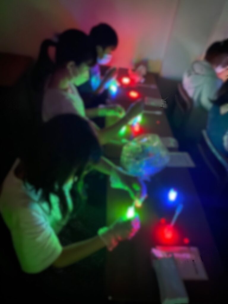 3色に光る液体を自分で調合し、好みの色を作ったりするのも、楽しかったね♪