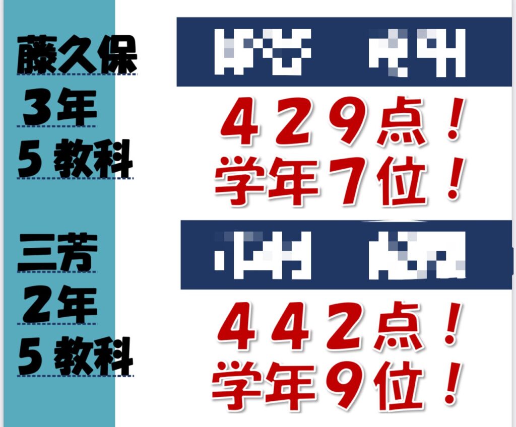 三芳中の2年生が学年1位を取ったが、