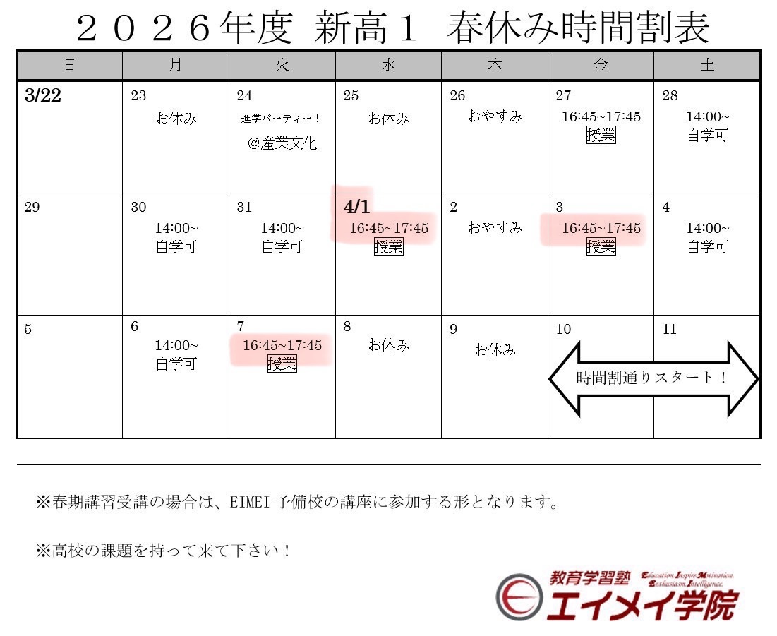 どうもこんにちは、エイメイ学院のASKです✋️ 3月も中旬です、今週末は卒業式ですね🌸 新高1は、直近で「高校入学者向け説明会」がある人も多いんじゃないでしょうか さらに!新学期までに行う、春休み期間中の課題 […] -