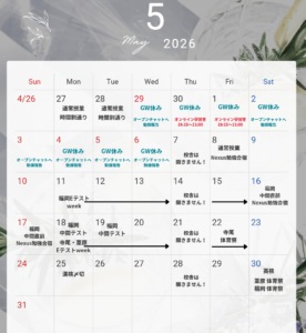 そのため、テスト後のNexus休みでは通常授業は行わず、「テストの反省・アドバイス」、「ワークDAY」、「家庭学習報告」など、その時期に生徒にとって必要なサポートを行います!詳細は改めて公式LINEよりご連絡いたします。