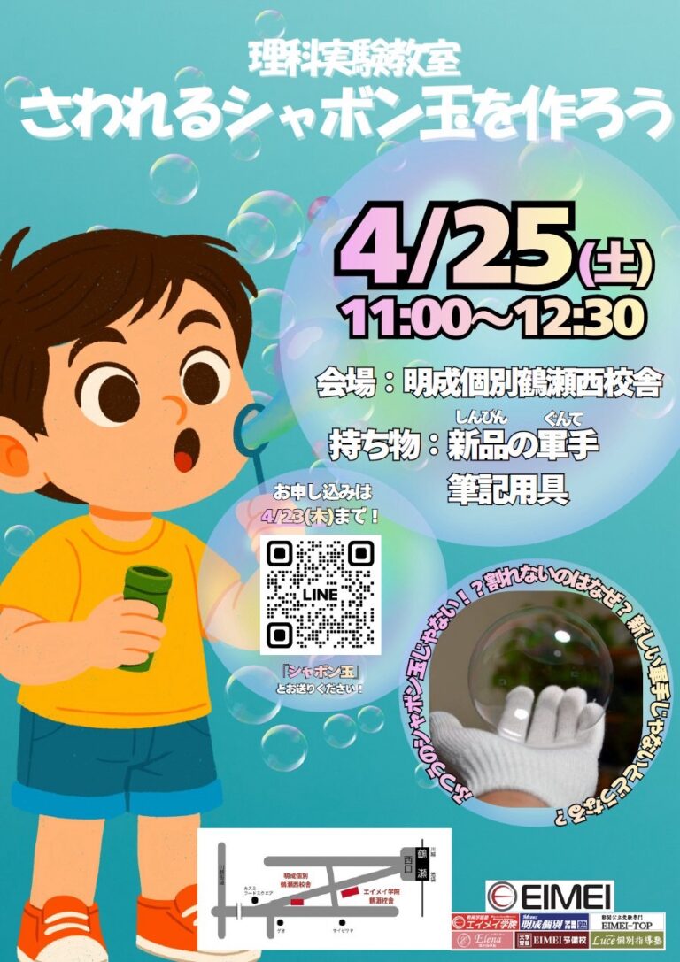 【鶴瀬校】魔法みたい!?「さわれるシャボン玉🫧」を作ろう!理科実験教室