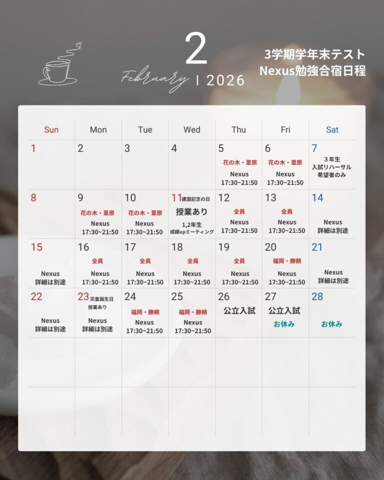 2/5(木)から Nexus勉強合宿が始まります! 【3学期学年末 Nexusテスト対策】 […] -