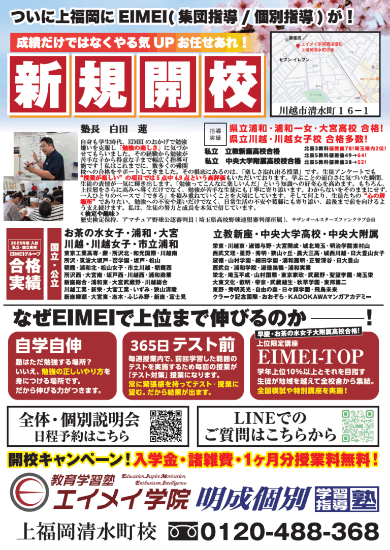 【上福岡・川越】EIMEI上福岡清水町校が11月22日プレオープン!