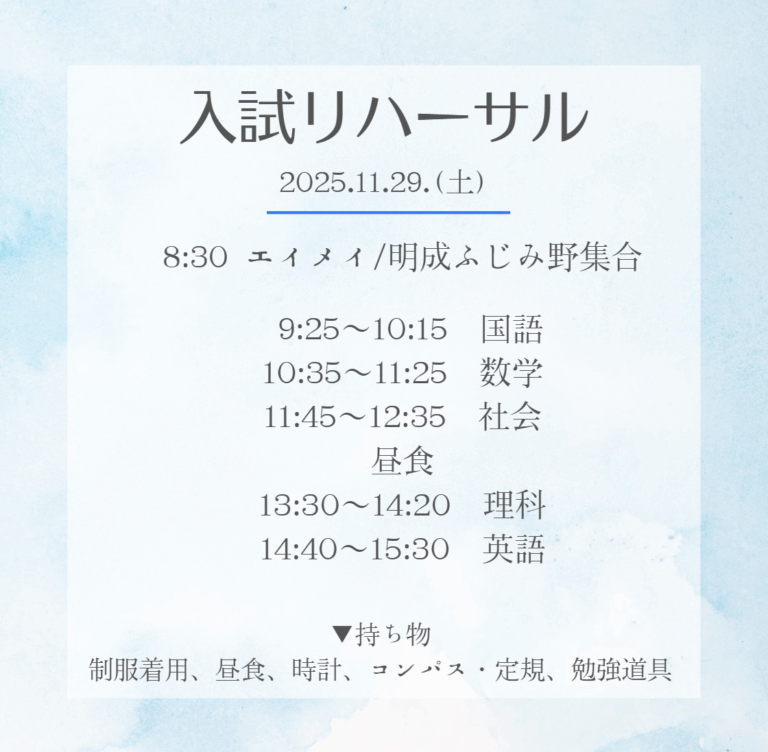 11月29日(土)に第1回の入試リハーサル を行います! より本番に近い環境で実施します。 大事な入 […] -
