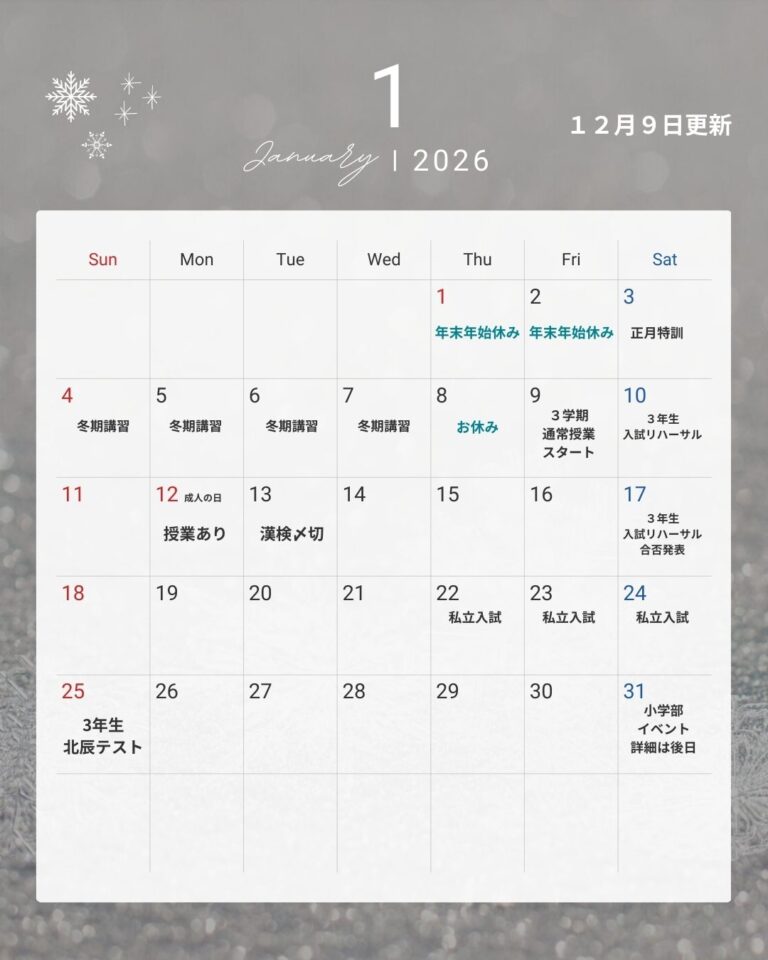 #シマのブログ 2025/12/7 Shima Shima English! 受験生たち、よく頑張っ […] -