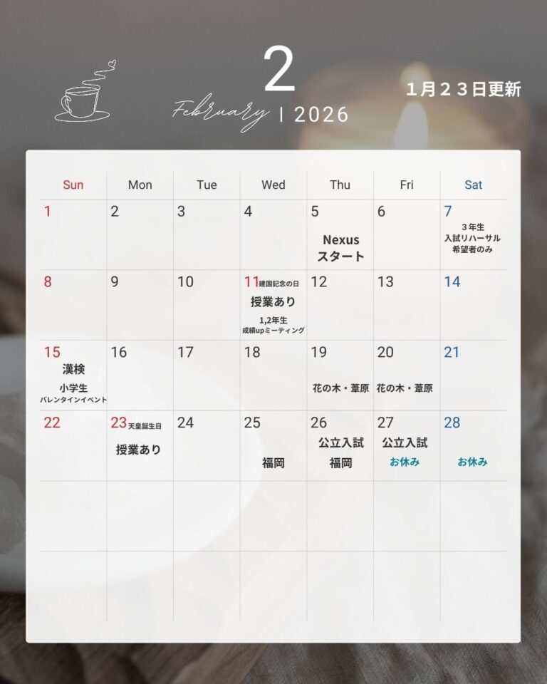 12月23日(火)から 冬期講習が始まります!! 小学生は 集団指導(英語)+個別指導(算数・国 […] -