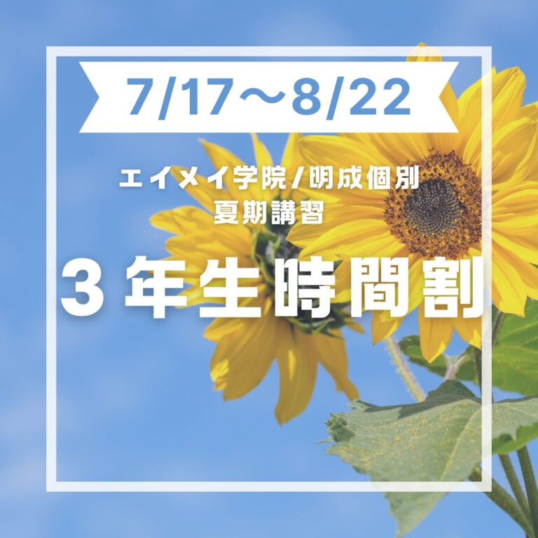 9日(土)で夏期講習前半が、終了しました! 8月10日(日)~17日(日)まで、 お盆休みとなり、夏 […]