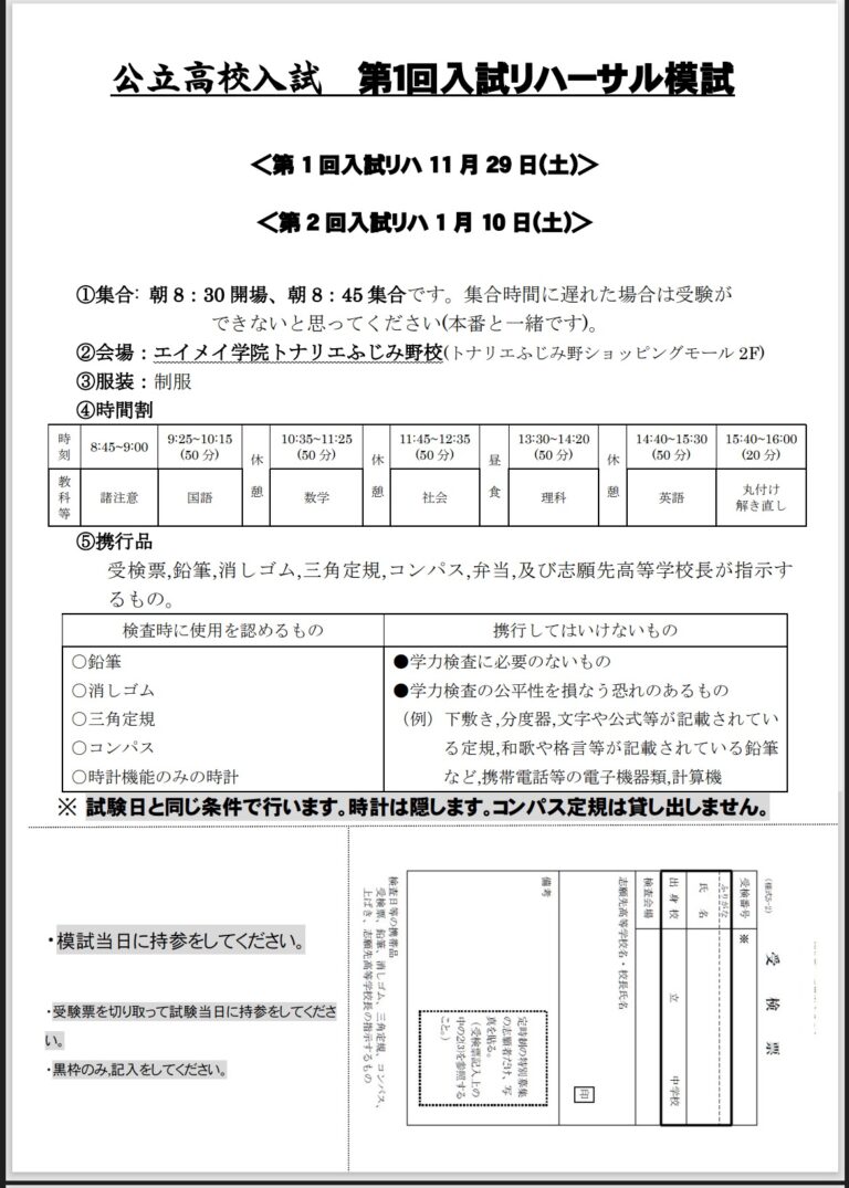 【トナリエ】11/29(土) 第1回入試リハーサル📝