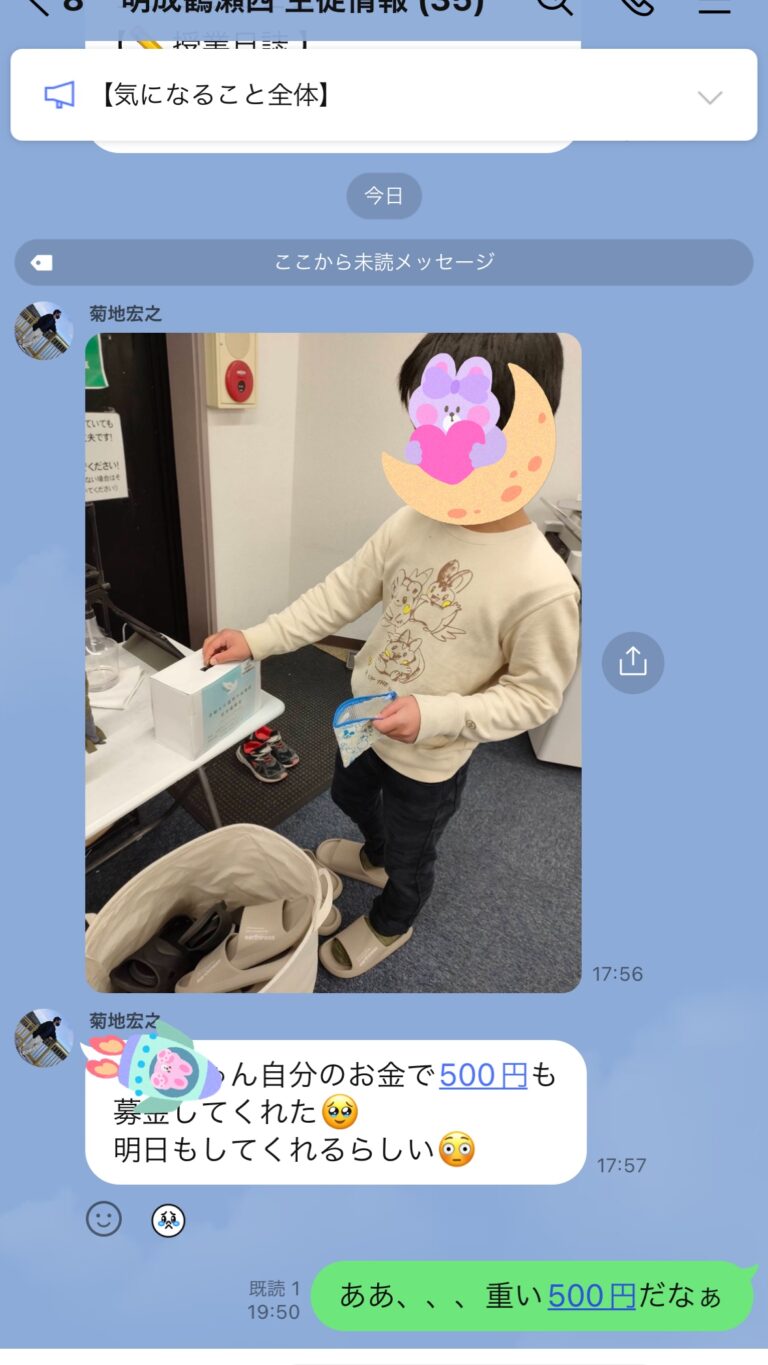 昨日のとある一コマ 小学生の生徒が、保護者様と一緒に募金をしてくれました✨ 硬貨専用だったので、お札 […] -