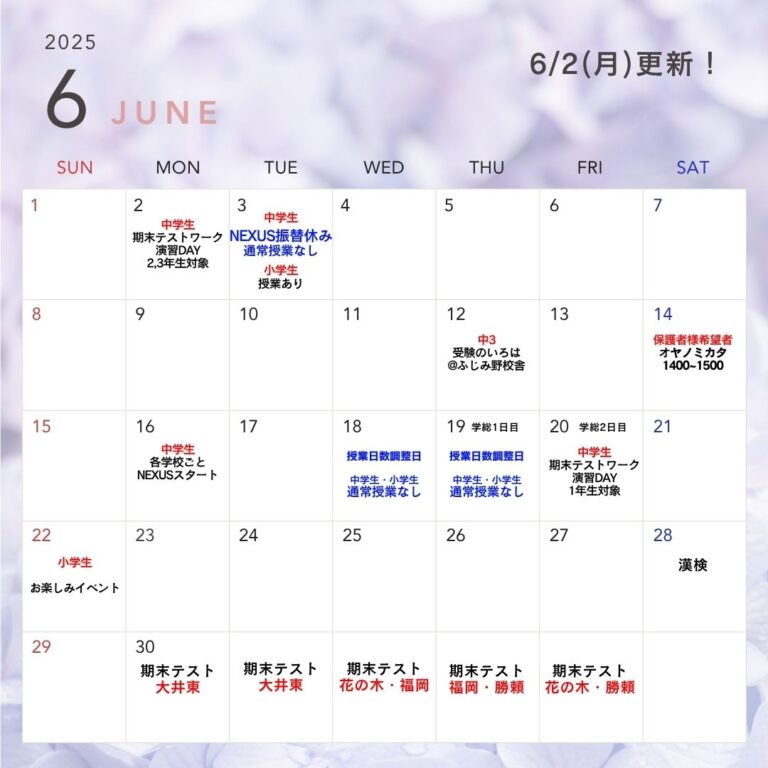 6月7月8月の予定表となります! ※多少の変更がある場合がございます。その場合はすぐにご連絡致し […] -