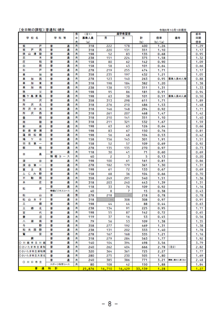 【EIMEI ASK】埼玉県公立高校入試、10月1日時点での倍率が出ました!