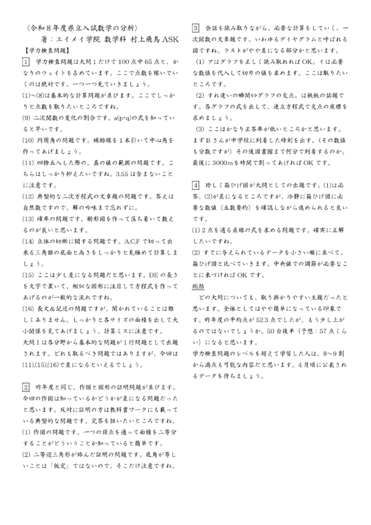令和8年度入試(2026年度)