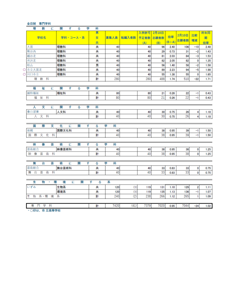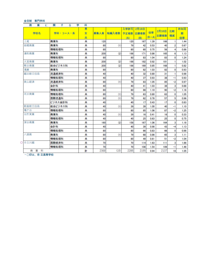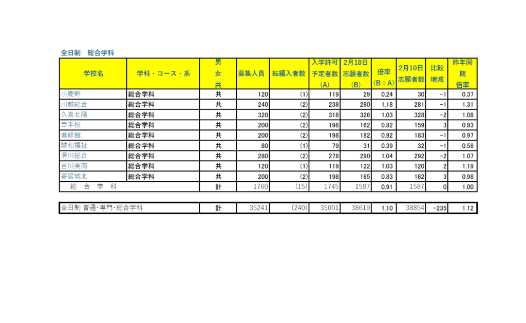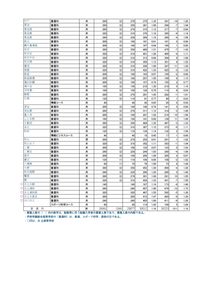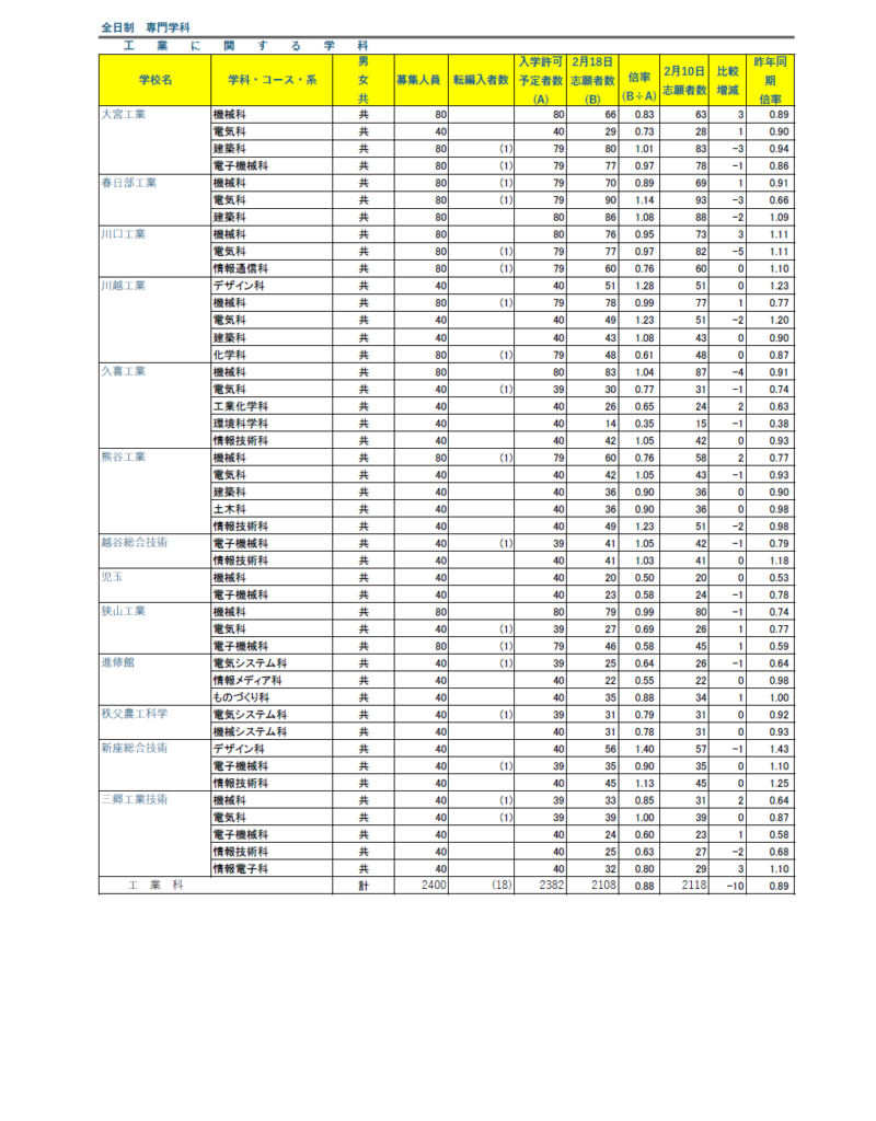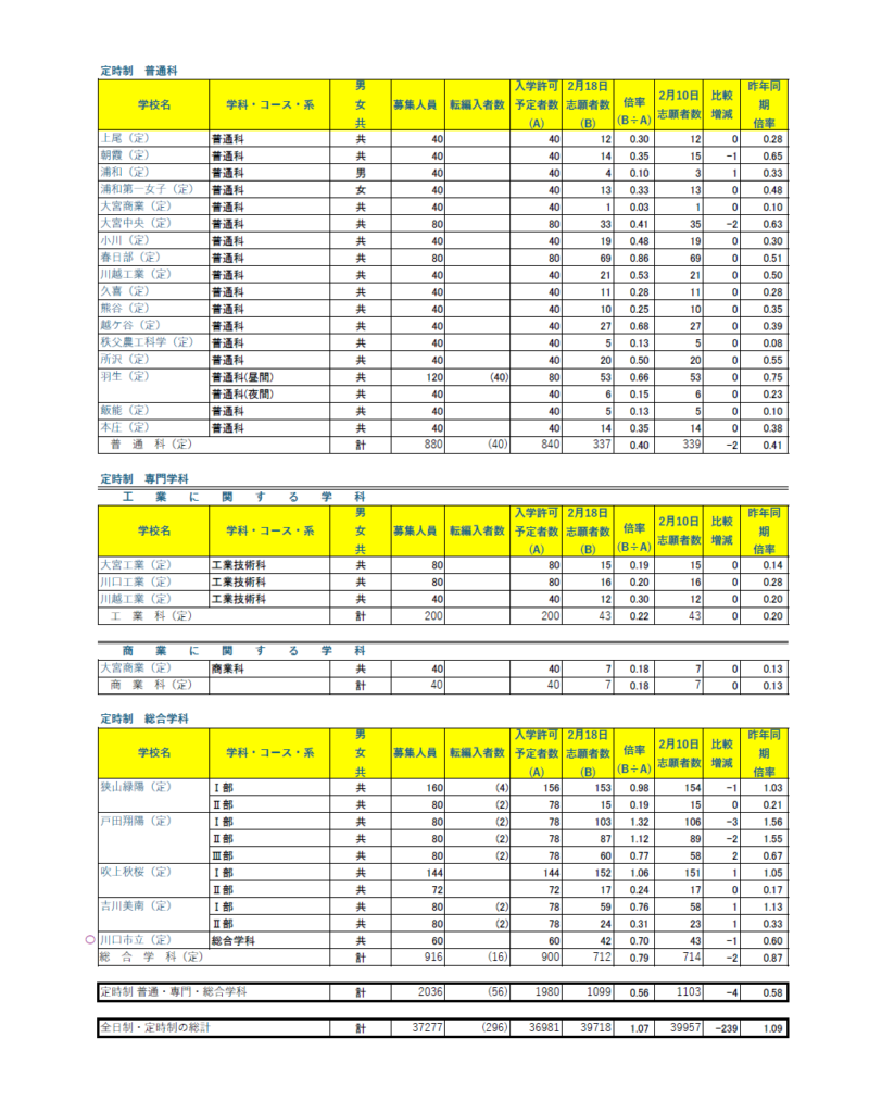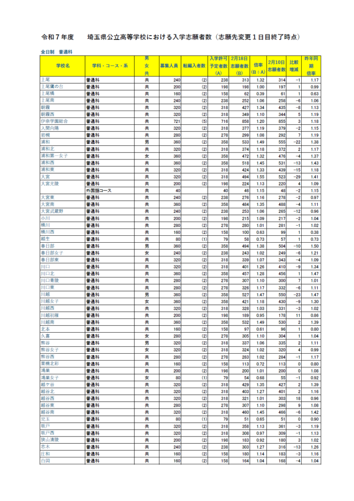 【EIMEI ASK】埼玉県公立高校入試、2月18日時点(志願先変更1日目)での倍率が出ました!