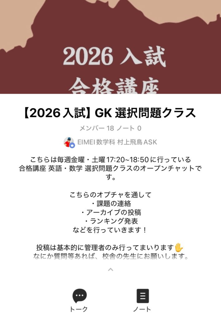 クラスに属する子は、全容のオープンチャットに入ってもらいます