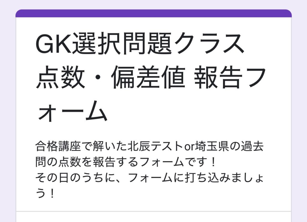 こんな感じで、フォームにて点数と偏差値を報告してもらっています