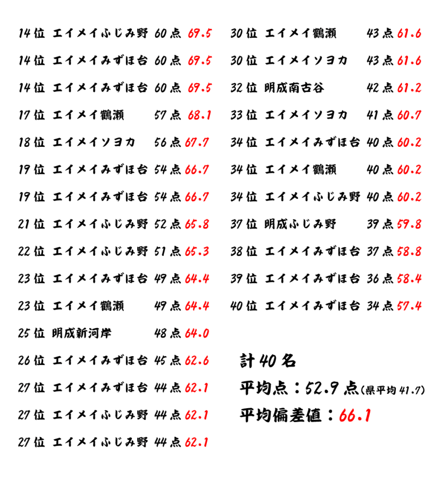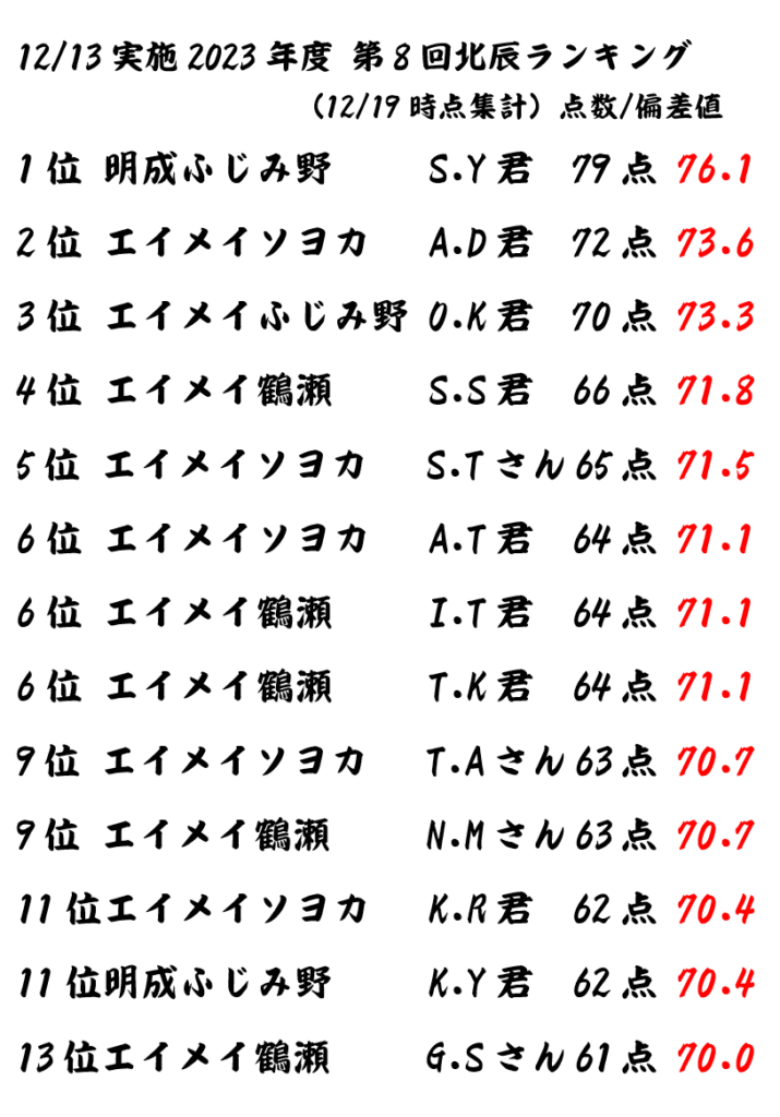 ↑これは昨年、選択問題クラスに所属していた先輩たちの12月のランキングです