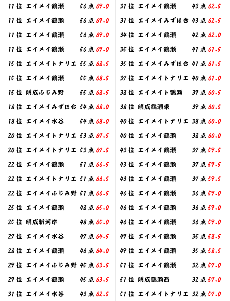 前回より、少し偏差値が下がりましたね