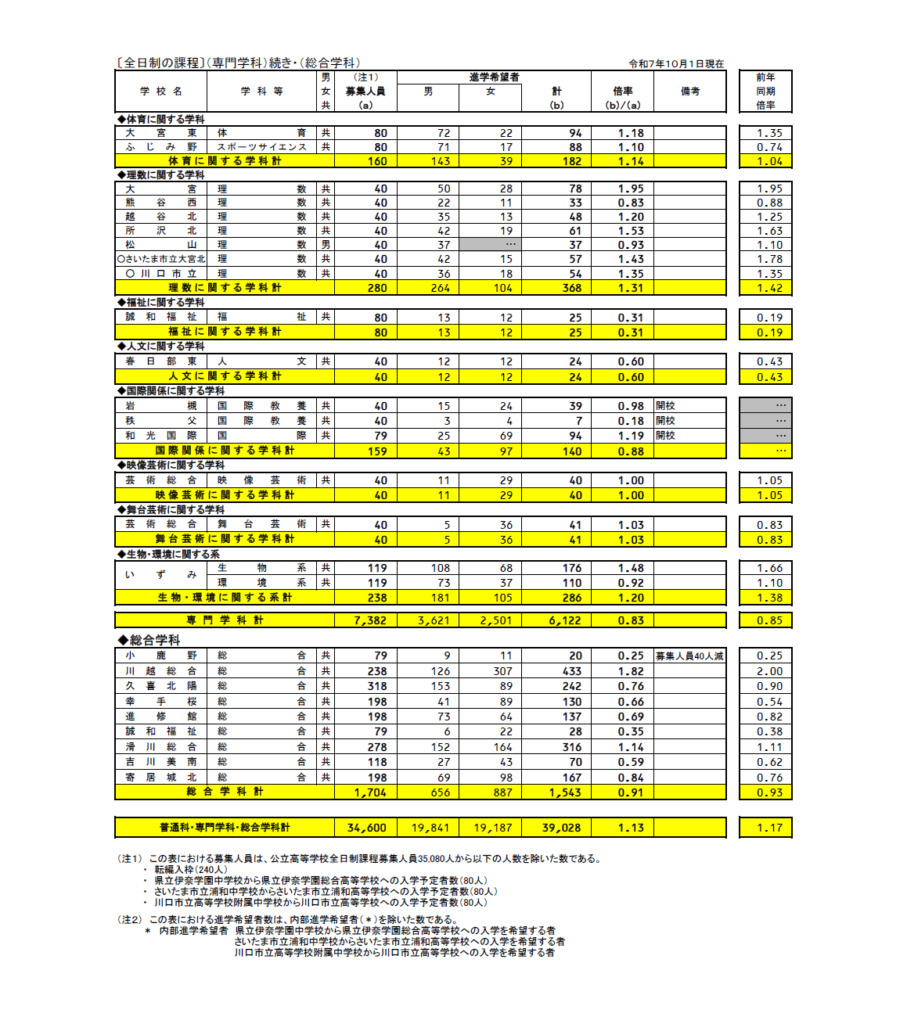 【EIMEI ASK】埼玉県公立高校入試、10月1日時点での倍率が出ました!