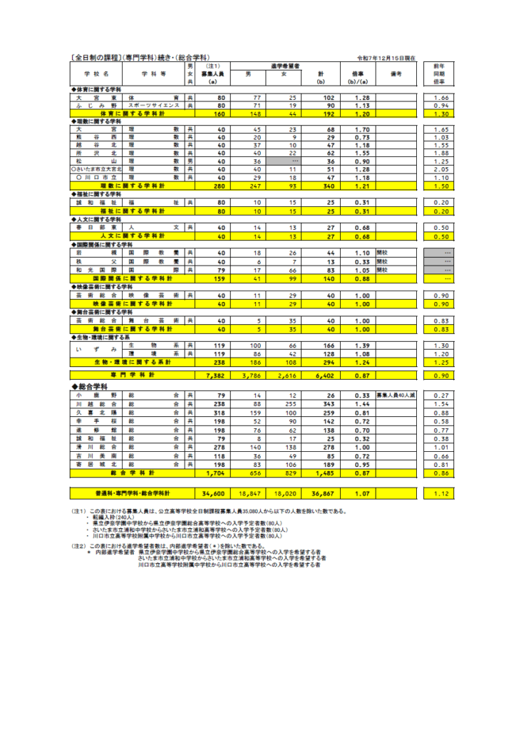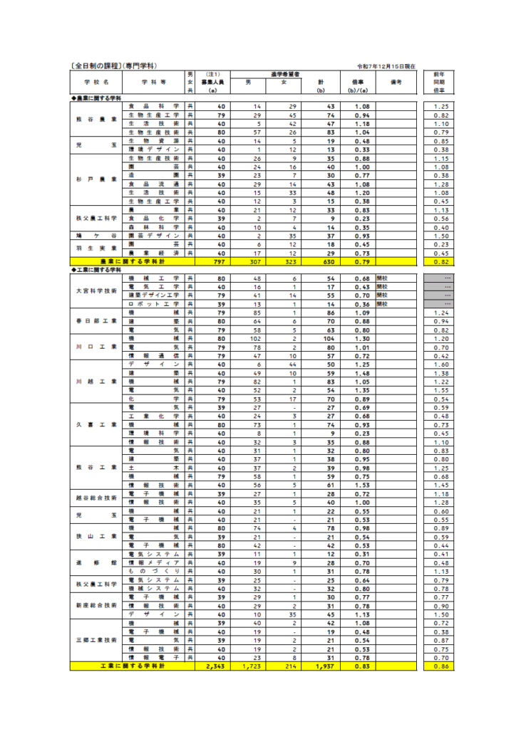 【EIMEI ASK】埼玉県公立高校入試、12月15日時点での倍率が出ました!
