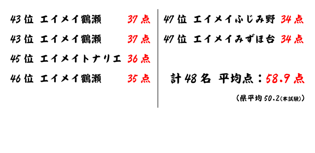 平均点も、前回の雪辱を晴らし、しっかりと県平均を超えてきました
