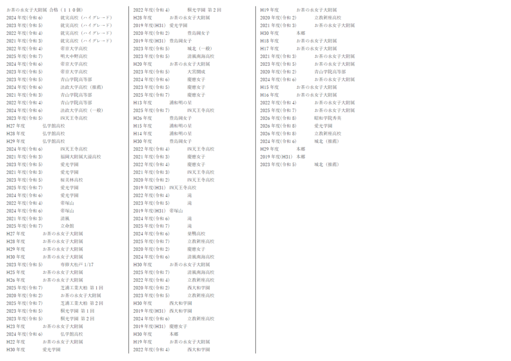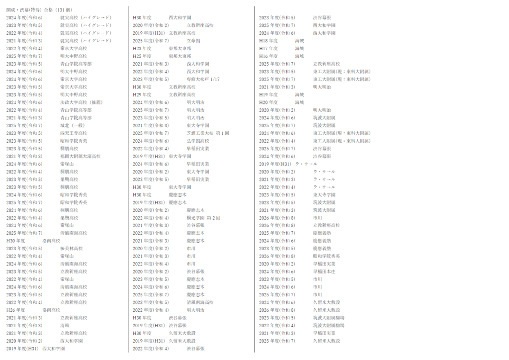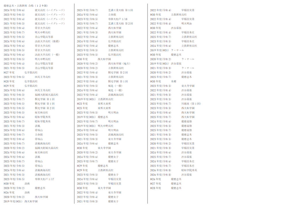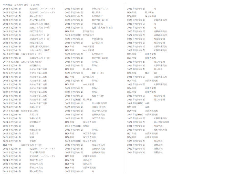 ご覧の通り、今年度の、EIMEIグループの合格実績(私立・国立)です