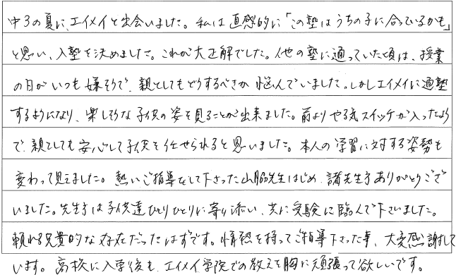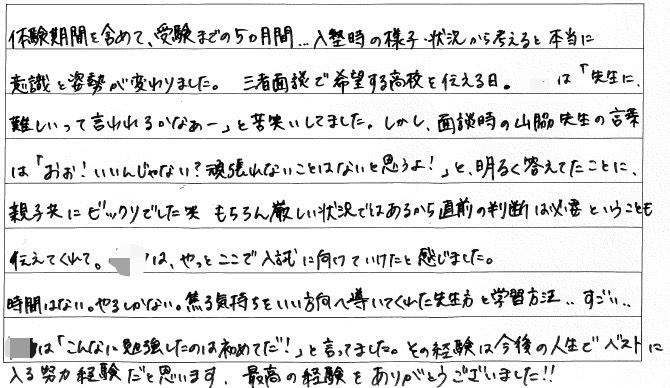 受験を終えた保護者様に、「保護者様の受験体験記」として