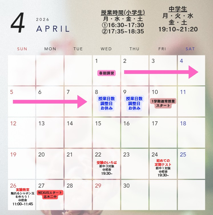 ※基本的に、お休みの表記が無い日は授業があります!