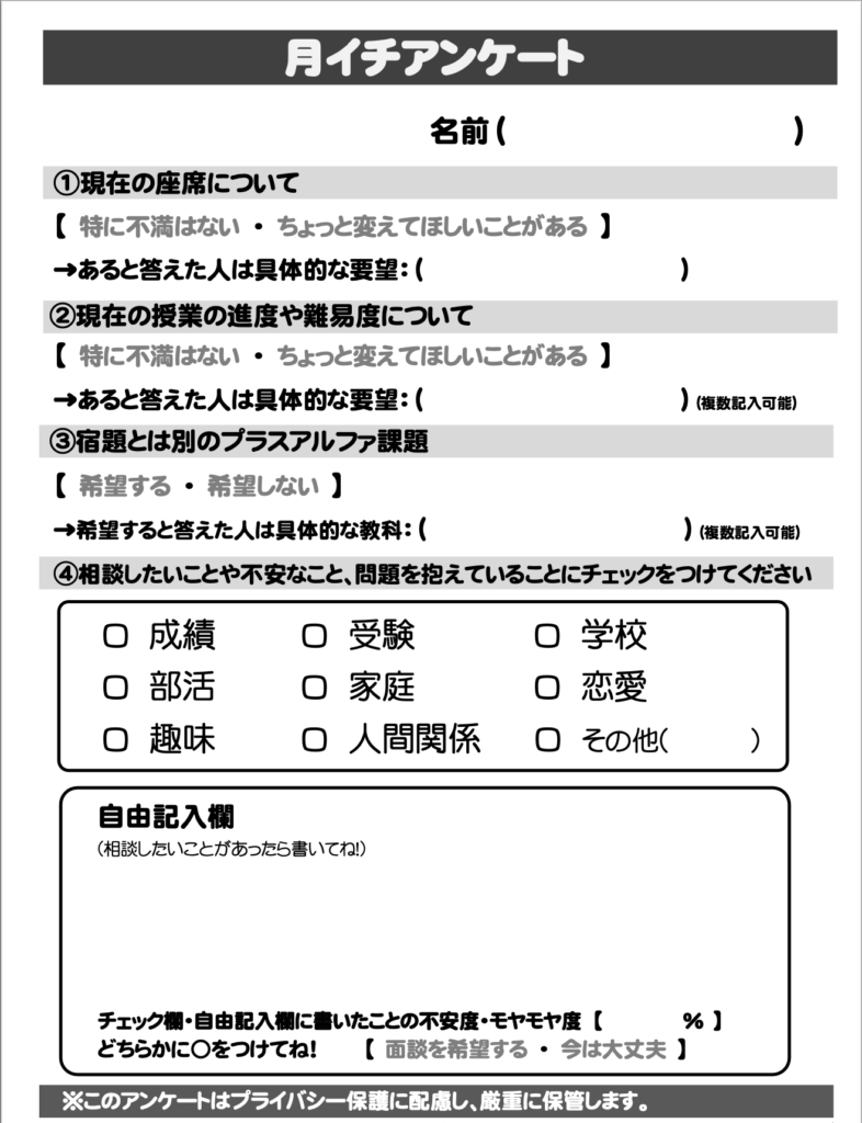 生徒1人1人にとってさらにいい指導になるように、面談や改善を重ねています。