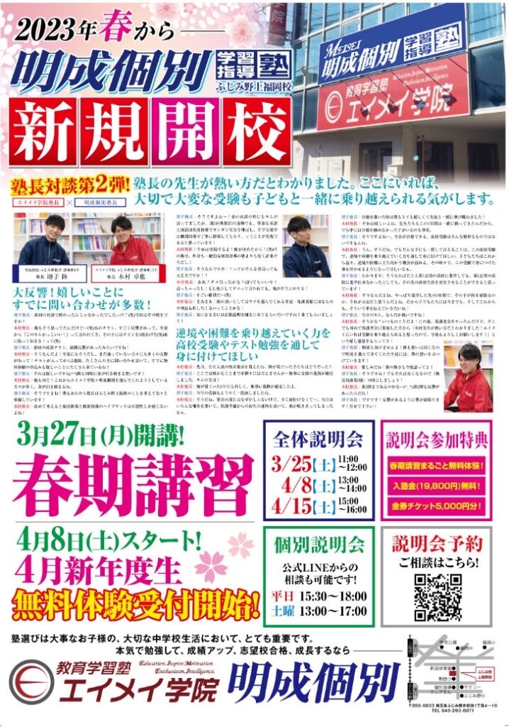 エイメイ学院/明成個別 ふじみ野・上福岡へ集まれ!